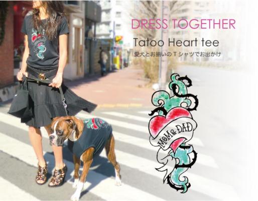 愛犬の名前が入る愛犬とお揃いTシャツ【タトゥーハートTシャツ】は、愛犬とのお散歩を楽しくするアイテムです。