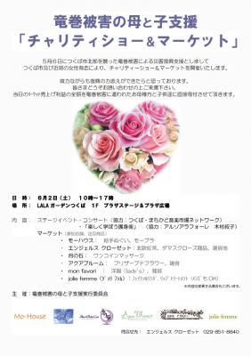有限会社 Angel's Closet(茨城県つくば市、代表取締役社長:飯田美加、以下Angel's Closet(エンジェルスクローゼット)は、2012年6月2日(土)にLALAガーデンつくば店 プラザ広場・プラザステージにて「竜巻被害の母と子支援 チャリティーショー&マーケット」に出店いたします。