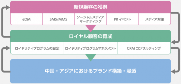 グローブリンクは卓越した最新のダイレクトマーケティング手法と本格的なCRMの導入により、中国・アジア市場での新規顧客の獲得からロイヤル顧客の育成まで、現地の消費者の心を掴み、その心を離さないソリューションを提供致します。
