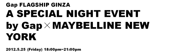 ギャップジャパン株式会社(本社 : 東京都渋谷区)は、2012年5月25日(金)にGapフラッグシップ銀座にて、日本ロレアル株式会社(本社 : 東京都新宿区)が展開するメイクアップブランド “メイベリンニューヨーク”とのコラボレーションイベントを開催します。
