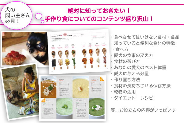 これまでの、犬の為の手作り食の本とは全く違い、犬の為にワザワザ作るのではなく、あくまでも人が主体なのも特徴の一つ。