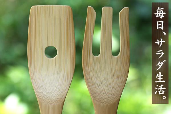 う金属製のトングを使ってもいいけれど、ここはやはり、この極上竹サラダサーバ