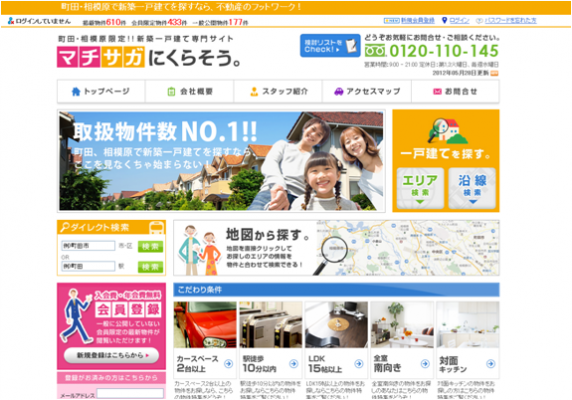 自社ホームページ構築支援ASP「いえらぶCLOUD」を利用し、ポータルサイト「いえらぶ」と連動する形で、サイトを構築しております。