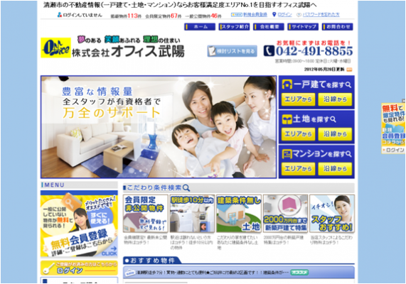 「夢のある、笑顔あふれる、理想の住まい」と掲げ、清瀬市だけではなく、東久留米市・東村山市の不動産情報も扱っており、一戸建て・土地・マンションまで幅広い物件情報を提供しています。