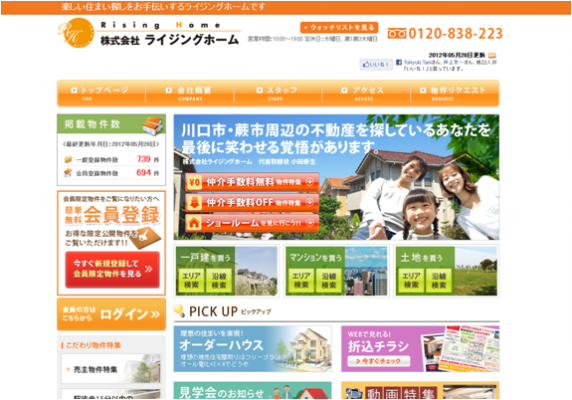 『株式会社ライジングホーム』様は埼玉県川口市、蕨市の不動産情報、沿線では京浜東北線・埼京線沿線の物件情報に強い不動産会社です。