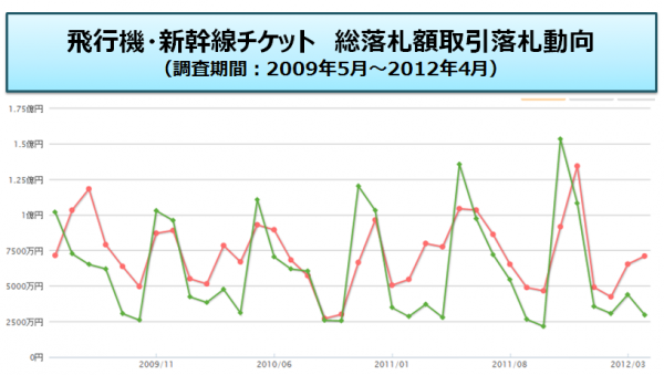 また、航空チケットの平均落札額は15,257円、新幹線チケットの平均落札額は13,333円という結果となりました。