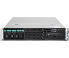 2個までのソケット(ソケットR)対応シリーズCPUが搭載可能な2Uサーバーで、8台までのハードディスクおよびSSDが直接装着できる2.5インチ・リムーバブル・ベイを装備しています。最大16コア32スレッドの並列演算処理、DDR3/1600MHzメモリーのサポート、デュアル8GT/s QPIリンク、256ビットの浮動小数点演算レジスタ、20MBのCPU内蔵キャッシュ・メモリ、さらに進化したIntelR Turbo Boost Technology 2.0の採用やAVXコマンドセットへの対応により、HPC、クラスター、データベース、メディア・コンテンツ作成など、演算処理能力を必要とするアプリケーションのパフォーマンスを最大で2倍向上します。また、IntelRノード・マネージャーとIntel データセンター・マネージャー機能が、システムの温度管理と大幅な消費電力の低減を可能にし、ITインフラの性能を飛躍的に向上させる柔軟性を提供します。