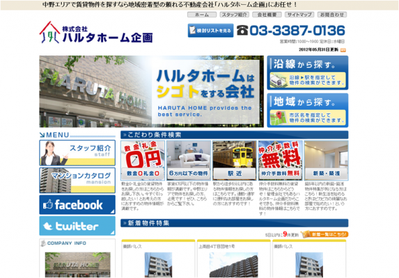 不動産業に特化したインターネット広告代理事業を行う、株式会社いえらぶGROUP(所在地:東京都新宿区 代表取締役:岩名泰介)は、東京都中野区の不動産会社『株式会社ハルタホーム企画』様のWEBサイトを制作・公開致しました。