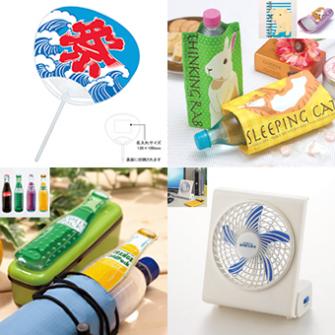 対象商品:オリジナルうちわ 丸柄G 祭(青) (180円→106円)、スリムな保冷剤4柄アソート (240円→142円)、ほのぼのアニマルボトルクーラー (240円→142円)、ブレッサ ポータブルファン (1,000円→588円) など全180品目