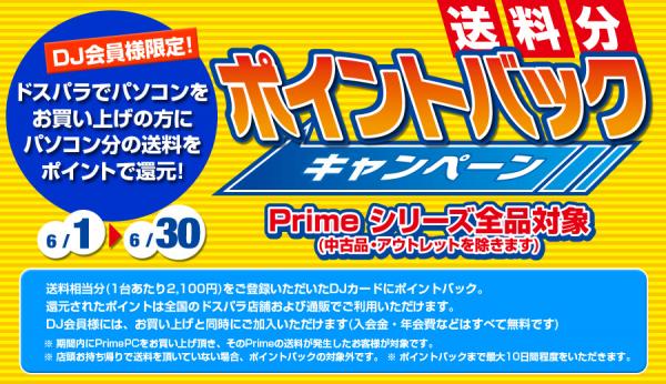 キャンペーン内容 : 「Prime」シリーズの送料相当分(1台あたり2,100円)を、DJポイント