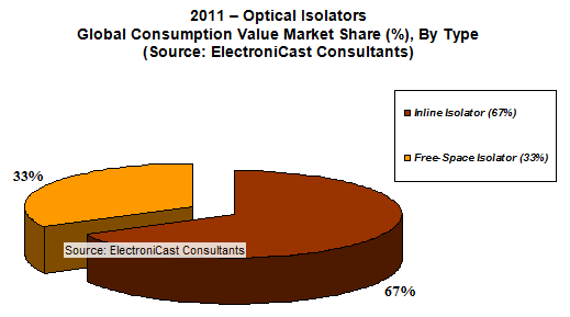 2.1.1 ElectroniCast Estimates: Market Share (%) of Leading Optical Isolator Competitors (2011)