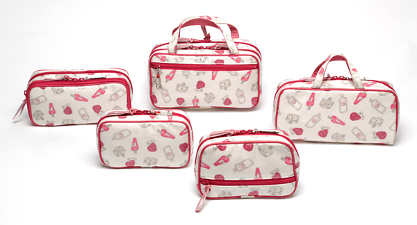 香水瓶をモチーフに、ピンクとホワイトで恋する女の子のみずみずしいイメージを表現した化粧ポーチです。