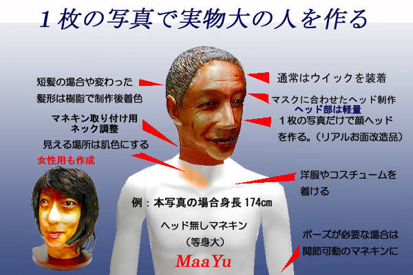 ○等身大、1枚の写真で蝋人形の様な実物大の人間を格安で制作