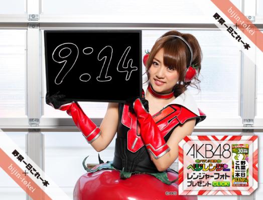 全国各地の美人が1分ごとに時刻をお知らせする bijin-tokei PC版、bijin-tokei+ iPhone/Androidアプリ、各種ガジェットにAKBベジレンジャーが登場します。出演時間は下記のとなります。