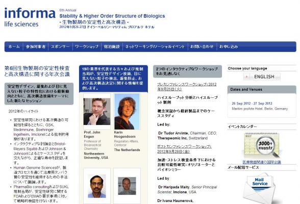 株式会社グローバル インフォメーションでは、皆様の利便性を図る為に、日本語、韓国語、中国語で「Stability & Higher Order Structure of Biologics (生物製剤の安定性と高次構造)」の情報を提供するとともに、会議の参加のお申し込みを承っております。