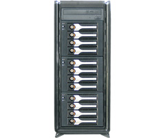 Qualest XE3SV4 V2シリーズは、1本のPCI-Express 3.0(4)/2.0 16xバス、2本のPCI-Express2.0 4xバス(8xソケット使用、L4モデルは装備しておりません)、3本の32bit PCIバス(L4モデルは1本)を装備しており、高性能グラフィックス・ボードや SAS/SATA RAIDコントローラの増設が可能です。全ての拡張バスで、フル・レングスのオプション・ボードが使用できます。12台の3.5インチHDDリムーバブル・ベイは、オプションの3/6Gbps SAS/SATA RAIDコントローラの増設により、SASエキスパンダー経由のSASディスクの使用やディスクのホットスワップ化が可能となり、貴重なデータを完璧に保護するホットスワップRAID環境(5)の構築が可能です。また、PCI-Express 3.0(4)/2.0 16xバスは、グラフィックスやストレージ以外のコントローラにも利用できるため、システムの用途に合わせたカスタマイズが可能です。