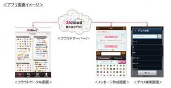 『;Dcloud』は、クラウドサーバー上にある数万点のデコメを自在に呼び出して使うことができる、スマートフォン向けのサービスです。今後、本サービスを利用した様々なアプリがリリース予定となっており、日本国内のみならず世界中でデコメが利用可能となります。