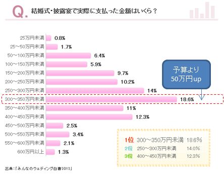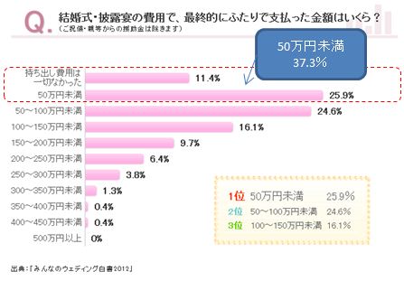 【結婚式費用】予算よりも50万円ほど高くなる傾向。最終的な持ち出しは、50万円未満(37.3%)。
