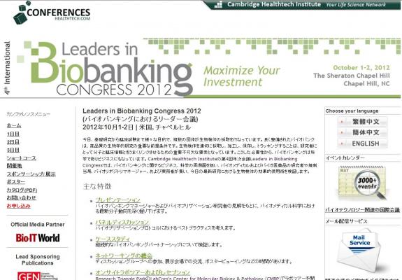 株式会社グローバル インフォメーションでは、皆様の利便性を図る為に、日本語、英語、韓国語、中国語で「Leaders in Biobanking Congress 2012 (バイオバンキングにおけるリーダー会議)」の情報を提供するとともに、会議の参加のお申し込みを承っております。