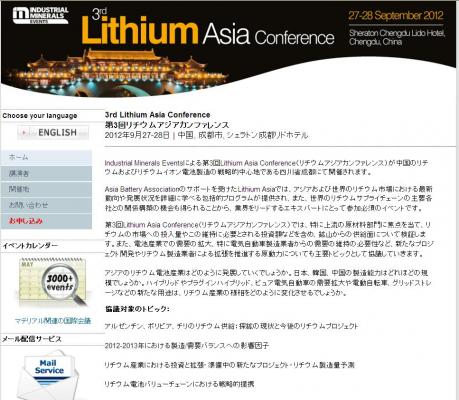 会議:「3rd Lithium Asia Conference (第3回リチウムアジアカンファレンス)」