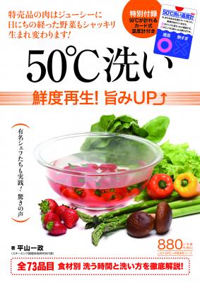 NHK「クローズアップ現代」、NHK「ゆうどきネットワーク」、日本テレビ「ZIP!」、日本テレビ「スッキリ!!」、TBS「はなまるマーケット」、フジテレビ「とくダネ!」、テレビ朝日「やじうまテレビ!」テレビ朝日「スーパーJチャンネル」、テレビ東京「レディス4」など続々紹介! 「50度洗い」生みの親・平山一政・著『50度洗い』は、色が変わって知らせる、50度が計れる温度計が付いて定価880円(税込)で小学館より6月27日発売。特売品の肉はジューシーに、魚の臭みは消え、日にちの経った野菜もシャッキリ! 話題沸騰の『50度洗い』。50度のお湯で洗うだけで食材が生まれ変わる「50度洗い」の秘訣を紹介! 全73品目、食品別・洗う時間の一覧表や保存法&解凍術を掲載。 節約アドバイザー・丸山晴美さんも食費カットに役立つと絶賛!! 有名シェフも実践、驚きの声続々! 話題の一冊です。