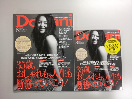 「通勤の電車の中で読める」「お風呂の中で読むのに楽なサイズ」「荷物が多い旅行にも持っていきたくなる軽さ」「普段でも持ち歩ける」「本棚でも場所をとらない」等、読者の方々からたくさんの嬉しい反響も頂きました。「またバッグサイズを出して欲しい!」。そんな熱い声にお応えして、6月30日(土)に第2弾となる『バッグサイズDomani8月号』、発売です!