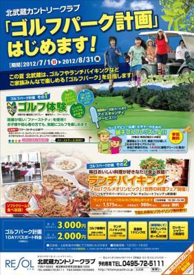 この『ゴルフパーク計画』の内容は下記のとおりで、参加費(1DAYパスポート料金=消費税込み)は大人3,000円、小人(小学生以下)2,000円。正会員の方は半額となります。この料金には、「ゴルフ体験(日曜&水曜は親子レッスン会でも可)+ランチバイキング+昼食時1ドリンク+練習場でクラブレンタル各1本無料+練習ボール30球+ロッカー・シャワーご利用可」が含まれております。開場時間は10:00~18:00。19歳~69歳の方は、ゴルフ利用税300円/人が別途かかります。