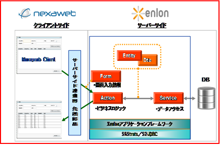 VBコンバーターを用いてマイグレーションされるRIAシステムは、XenlonとNexawebが連携して動作します。