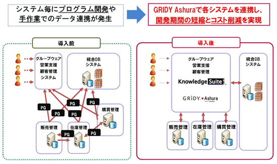 図3: クラウド型統合ビジネスアプリケーション Knowledge SuiteとGRIDY Ashura
