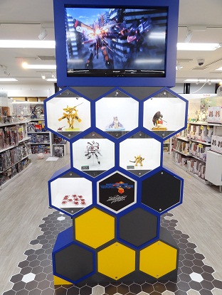 7月1日よりテレビアニメ放映開始の『マブラヴ トータル・イクリプス』をイメージした什器が登場。6角形をイメージした什器内にはケースが設置されており、今後はコトブキヤ製マブラヴプラキットやPVC完成品の新作展示も予定。加えて、各メーカーのマブラヴシリーズ関連商品も多種にわたりお取り扱いを開始。いち早く新製品の情報をお届けする。