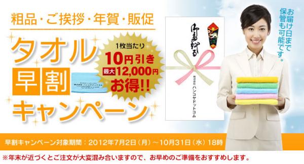 期間内のご注文なら、お年賀タオルに関わらず、お中元や粗品・ノベルティなどのご注文でも割引対象です。