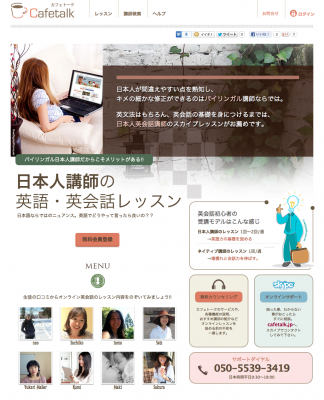 「カフェトーク」とは、高音質無料インターネットテレビ電話 スカイプ(Skype)を使用し、自宅に居ながら世界中の講師からマンツーマン英会話など、語学レッスンを受けられるサービスです。