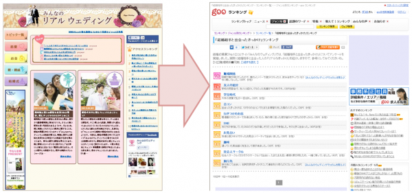 結婚式場選びNo.1口コミサイト「みんなのウェディング」※( http://www.mwed.jp/ )を運営する株式会社みんなのウェディング(本社:東京都中央区、代表取締役:飯尾 慶介)と、総合ランキングサービス「gooランキング」 ( http://ranking.goo.ne.jp )を運営する NTTレゾナント株式会社(本社:東京都港区、代表取締役:若井 昌宏)は提携し、「gooランキング」にて、ユーザーから寄せられたリアルな体験談をもとに、恋愛や結婚式にまつわる気になるテーマを発信する「gooランキング 『みんなのウェディングランキング』」の提供を、本日より開始します。