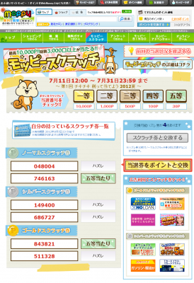 国内最大級のポイントサイトであるモッピーを運営する株式会社セレス(本社:東京都港区、代表取締役:都木聡)は、2012年7月11日(水)より、スクッラチを削って最高1万円分のポイントが当たる新コンテンツ「モッピースクラッチ」をPC向けにサービス開始いたしました。