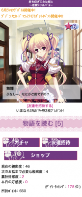 また、SNS をアプリケーションプラットフォームとするソーシャルノベルならではの友達紹介機能や、連続ログインボーナスなどといった機能も盛り込まれており、プレイ中でも過去のお話を思い出せるよう、既読のストーリーを簡単に美麗なグラフィックとともに再生できる機能も付加いたしました。