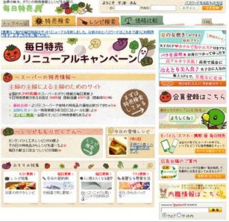 「主婦の主婦による主婦のためのスーパーのチラシ特売情報サイト【毎日特売】」が、