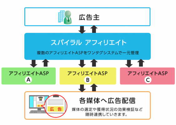 そこでパイプドビッツは、広告主のアフィリエイト広告の導入や運用にかかる負担や課題を軽減するASP一括管理サービス「スパイラル アフィリエイト」の提供を開始いたします。