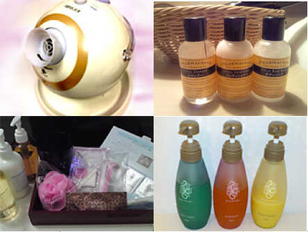 セレブリティ御用達の「ファーマコピア」アメニティ3点セット(各50ml)、資生堂の人気ブランド「エリクシール」スキンケア4点セット(各8g)、ポーラ・フェイスケア&ヘアケア5点キット(各3g)などをプレゼント。ナノイオンドライアー&ヘアアイロン常備、ローズの入浴剤、ハーブティー、その他フェイスシートマスク、THE AMENITYシャンプー・コンディショナー、ヘアゴム、コットンなど充実。宿泊は最上階レディースフロア確約。