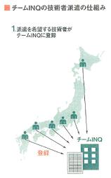 チームINQの派遣事業に関する記事が掲載されたのは、『日経コンストラクション』2012年7月9日号の「追跡 震災復興 人海戦術の現実 限られた人材で乗り切る仕組みづくりを」(40ページ~)という特集の中で、「建設会社の現実 新規参入した派遣会社への依頼増加」(45、46ページ)といった見出しとなっています。建設会社自身の採用活動だけでは人材不足に対応しきれず、施工管理技士など技術者の派遣依頼が増加している現実がまとめられています。