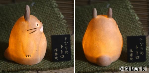 本来であれば透けることのない焼き物の信楽焼が、かわいらしいトトロ型のミニライトとして