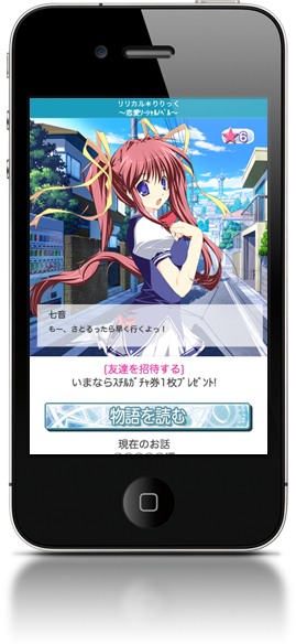 また、SNSをアプリケーションプラットフォームとするソーシャルノベルならではの「お友達紹介機能」「連続ログインボーナス」「好感度ランキング」などといった機能も盛り込み、新たにプレイ中でも過去のお話を思い出せるよう、簡単な操作で既読のストーリーを美麗なグラフィックとともに再生する機能も追加しました。