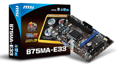 B75MA-E33は、Intel B75チップセットを搭載、高速インターフェースPCI Express 3.0に対応したMicro-ATX規格、LGA1155、DDR3デュアルチャンネル対応のマザーボードです。第3世代Intel Coreプロセッサに対応します。CPUに統合されたGPU機能を利用することが可能です。