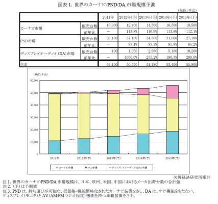 PNDとは持ち運びが可能な、低価格・機能簡略化されたカーナビ装置をさし、DAとはナビ機能をもたない、ディスプレイ(モニタ)とAV(AM/FMラジオ程度)機能を持つ車載装置をさす。DAは、リアビューカメラとの接続で駐車支援機能を、スマートフォンとの接続でスマートフォンのアプリ(ナビ、音楽配信、SNSなど)機能を、利用できる。
