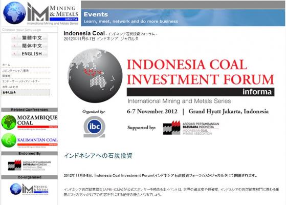会議:「Indonesia Coal Investment Forum (インドネシア石炭投資フォーラム)」