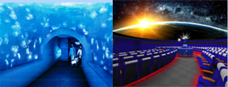 ▼上の写真は「サンシャイン水族館」(左)と「コニカミノルタプラネタリウム」(右)。