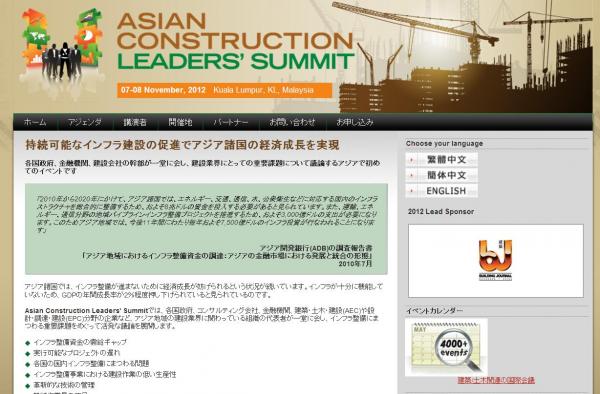 株式会社グローバル インフォメーションでは、皆様の利便性を図る為に、日本語、英語、韓国語、中国語で「Asian Construction Leaders’ Summit」の情報を提供するとともに、会議の参加のお申し込みを承っております。
