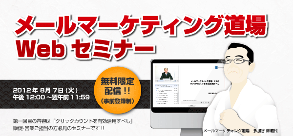 法人向け販促・顧客発掘を支援している株式会社アイアンドディーは、無料webセミナー『メールマーケティング道場「クリックカウントを活用すべし」』を、2012年8月7日(火)に開催いたします。