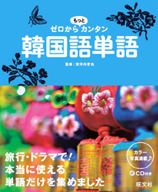 『ゼロからもっとカンタン韓国語単語』は、韓国に関心のある女性をメインターゲットに、韓国旅行や韓国ドラマをさらに楽しむための単語を多数収録した単語集です。たくさんの写真が掲載されたカラフルな紙面を見ながら、楽しく学習を進めることができます。