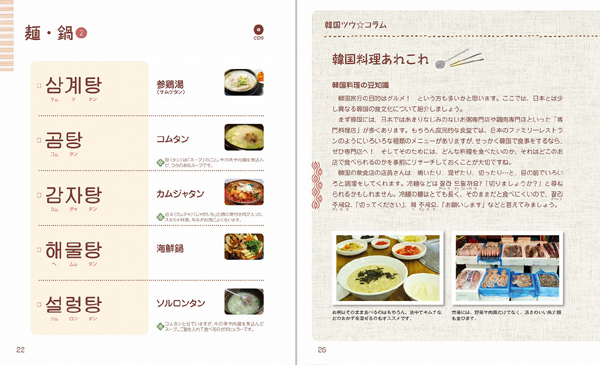 カラフルな紙面に、写真・イラスト・韓国旅行に役立つコラムも掲載されているので、「見るだけ」でも楽しめます。