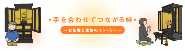 「いい仏壇.com」(「手を合わせてつながる絆」事務局)では、故人や先祖だけではなく、家族とのつながりの大切さを伝えてきた、日本の精神文化の象徴ともいえるお仏壇を後世に継承していくために、皆様よりお仏壇にまつわるエピソードを募集し、多くの方に家族とのつながりの大切さを伝えていきます。